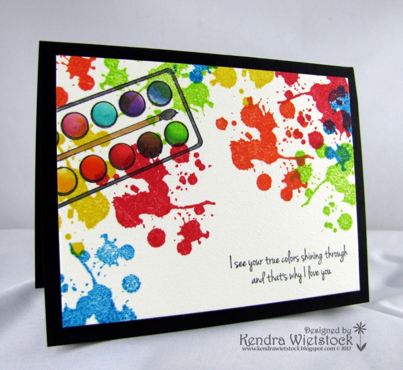 WOOHOOO! I love the 15th of the month because it's release day for the new Gourmet Rubber Stamps Appetizer sets. I am super excited about the sets this month too! The first set being released is called True Colors and it is SOOOOOOOOOOOOO fun!! Here's a card I made with this set &; I also added the Paint Splatter single as the background ~ super cool huh?