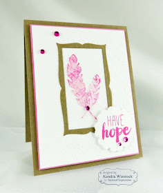 For the main image, I framed the Fine Feathers dies with the Frame in Frame Cutting Plate, then I added Angel Pink ink and then dabbed Rose Bud Memento ink on them for some texture. For the sentiment, I used the new Free Spirit stamp set.